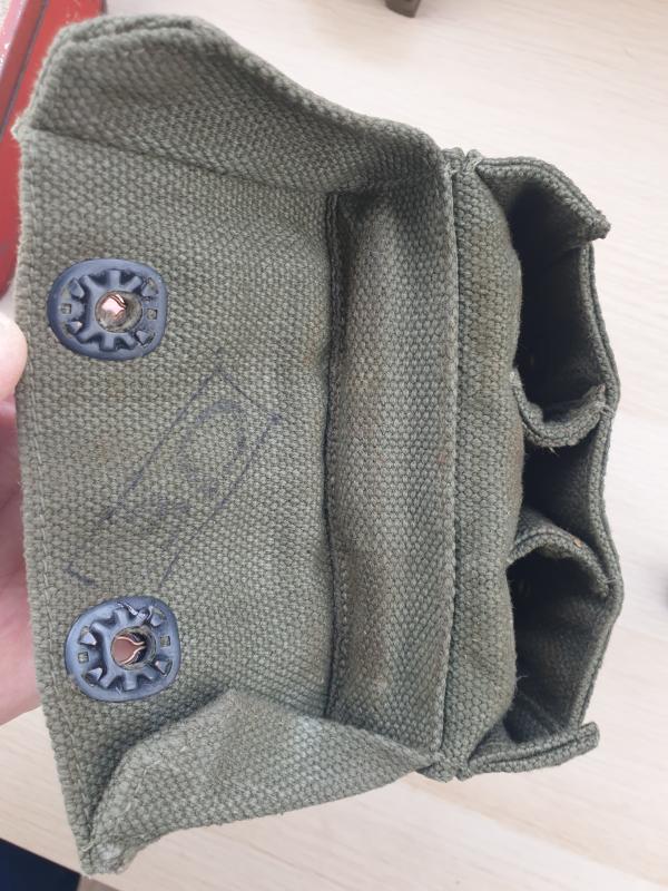 New old stock, made in the sixties. Dutch magazine pouch to store 3 magazines of 25 rounds. Specially made for the Uzi sub machine . Mint condition. more of these available.