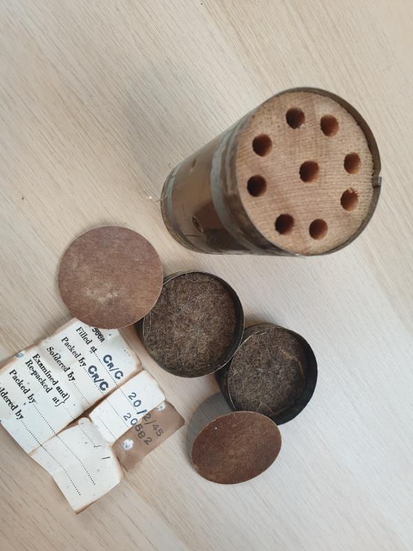 2 of these containers were stored in one of the cardboard tubes inside the metal Nr 77 box.