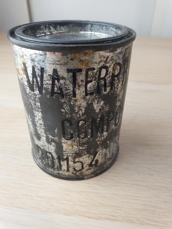 This putty was used to by thr Corps of Engineers to make connected detonators waterproof, when they were connected to Primacord. It s a coplete filled tin.